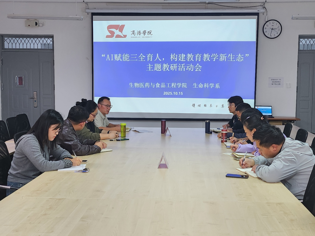 2025年10月15日,生命科学系组织召开“AI赋能三全育人,构建教育教学新生态”主题教研会,共同探讨人工智能技术在“三全育人”中的技术引领与融合实践。生命科学系全体教师参加了本次会议,会议由系主任华智锐主持。