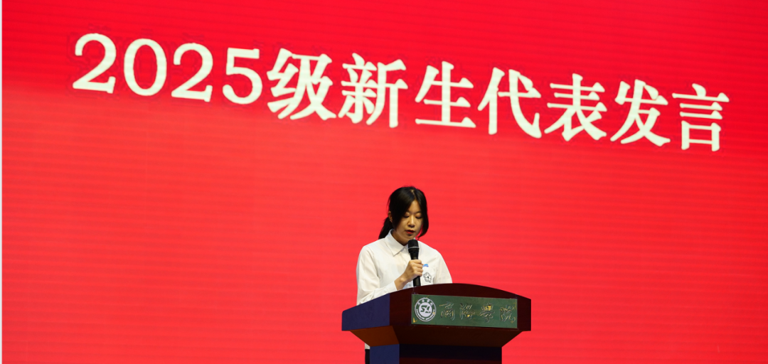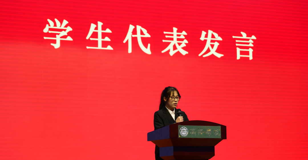2023级生技专业李金玲同学作为学生代表,分享了自己从迷茫到坚定的成长历程,建议新生珍惜时光、做好规划、主动学习、拥抱无限可能。